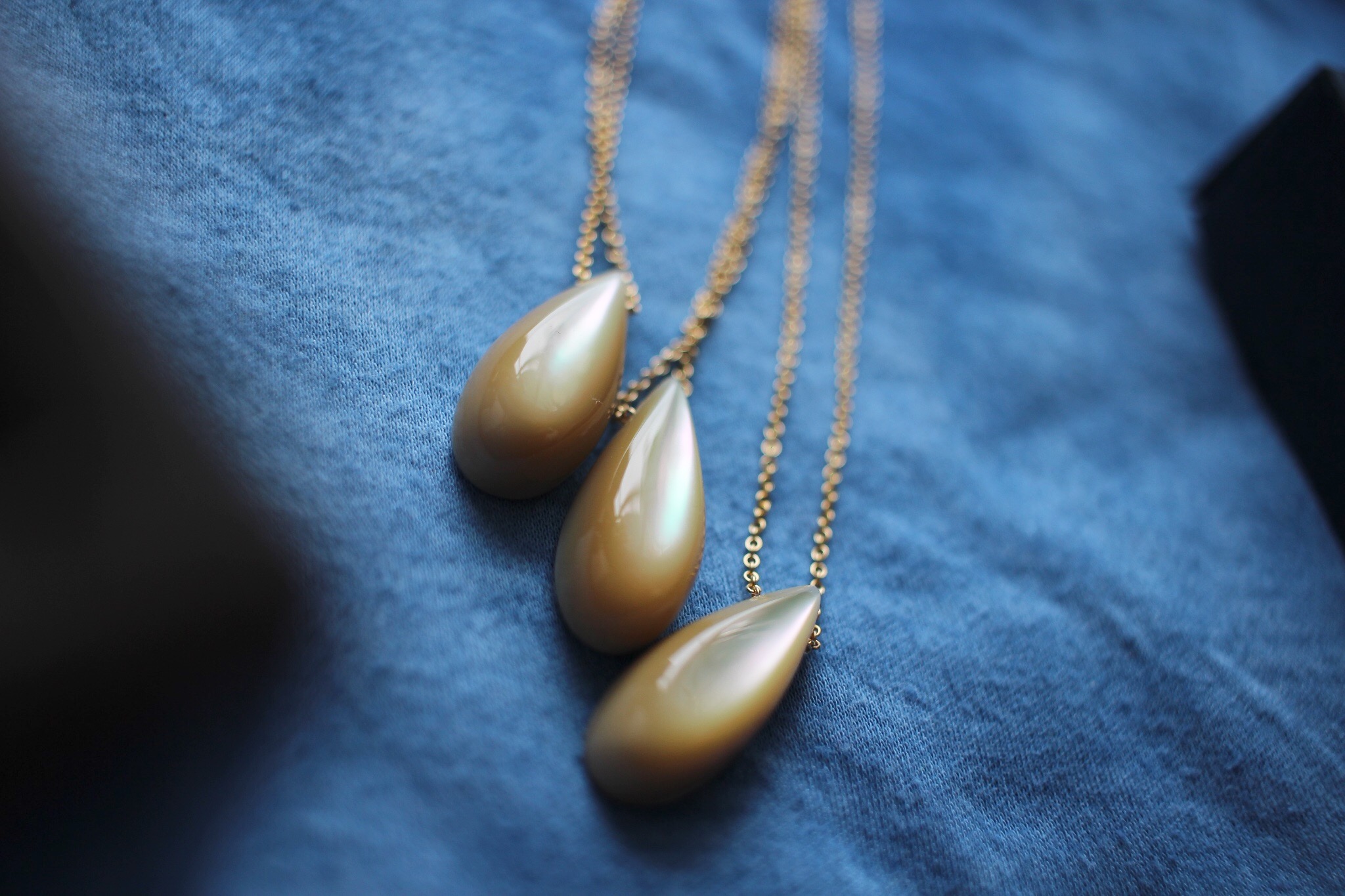 夜光貝という温かい海で採れる貝を手作業で加工し作ったアクセサリーを石垣島で作成しています。自然が織りなす色合いや優しい曲線はいつでも海を思い起こさせてくれます。