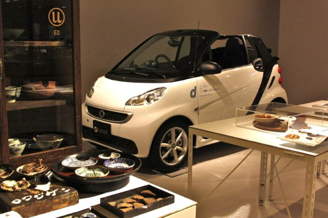 編集長であるナガオカが、取材する時に使用する、小回りも利いてデザイン性も優れているメルセデス・ベンツのスマートです。展示されているのは、実際使っているものとは違う、同シリーズの新型モデル。古い町並みの残されている小さい路地や、空まで上るようなビル郡に囲まれた道路を、こんなに素敵な車で駆け巡れたら、素敵ですよね。