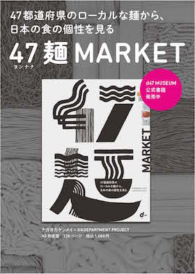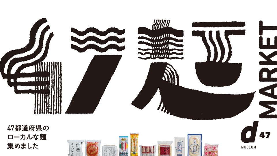 d47 MUSEUMでは「 旅」「物産」「地域問題」など、毎回様々なテーマで、47の日本の個性を47の常設展示台を使い紹介してきました。13回目の企画展となる今回は、「47 麺 MARKET」として、47都道府県のうどん、そば、ラーメン、パスタなどの「麺」を紹介します。その麺が誕生した背景や地元での食べ方の流儀など、それぞれの麺の個性を紹介しながら、実際に商品を買って楽しむことのできる、マーケット型の展覧会です。