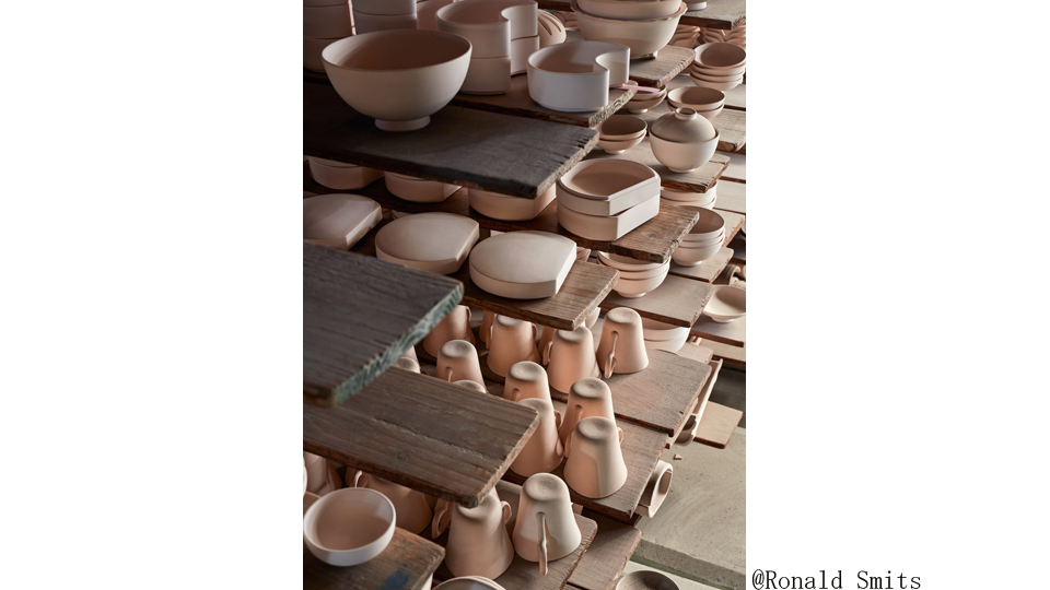 この問題に取り組む第一段階として、戦後から現代までに作られた生地を使用して 1 つのテーブルウェアコレクションを作りました。ティーポット 、カッ プ、皿、ボールなど、それぞれデザインされた年代が異なる形状 で構成されています。 各製品の裏には、形状がデザインされた年を記載しており、戦後から現代までの有田焼の形状のアーカイブとなります。 今回は特別展示として 54形状を展示販売します。各時代に日本の食文化が作り出した多様な形状をお楽しみいただきたいと思います。