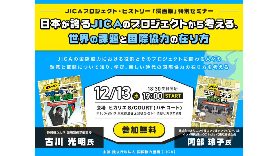 JICAの国際協力における役割とそのプロジェクトに関わる人々の熱意と奮闘について知り、学び、新しい時代の国際協力の在り方を考えるイベントです。