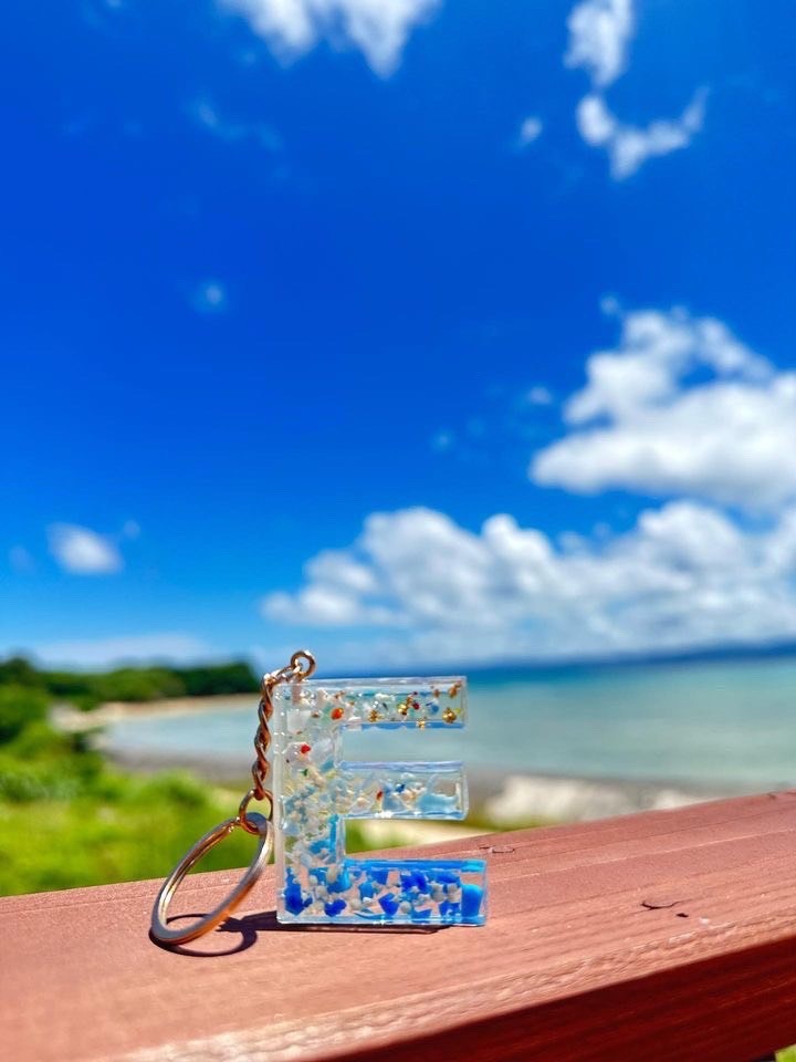 海に漂着した海洋プラスチックごみを素材にしたキーホルダー作り。好きな型と好きな色のチップを選び、レジン液を使って仕上げていきます。シェルなどのキラキラパーツでさらに可愛さアップ。同じものは2度と作れない、世界にひとつのキーホルダーを完成させよう。