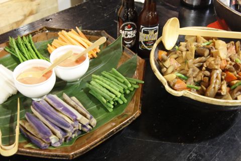 用意したのは、椎茸や人参、レンコンなどの野菜と鶏肉を一緒に煮込んだ「がめ煮」と、旬野菜の野菜スティック。