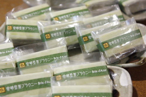 宮崎在住のパティシエと白玄堂のお茶がコラボした煎茶ブラウニー。