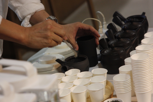 茶葉の保存方法やおいしい冷茶の作り方など質問もつきません。白尾さんも話がつきません。