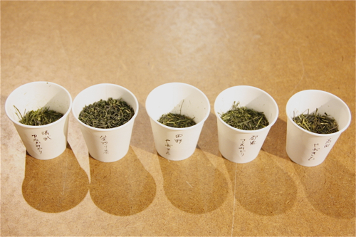今年の「新茶」の試飲の前に、ブレンド前の、宮崎で摘んだ5つの茶葉をそれぞれ試飲しました。