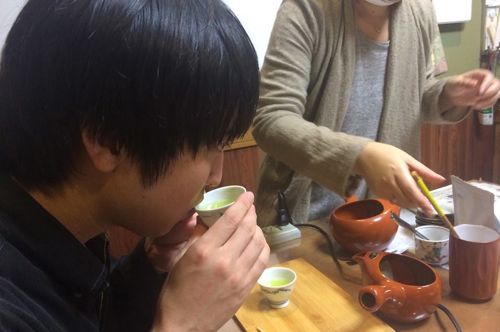 こつを教えてもらってわたしたちもお茶を淹れてみます。隆秀さんが淹れてくれたお茶と見比べてみると、水色が全然違う!そして飲んでみてその美味しさの違いに二度驚きました。美味しさが比べ物にならないほど違います。「自分が淹れたのが一番おいしいお茶です」とおっしゃっていましたが、なんども繰り返し淹れて隆秀さんのお茶に近づきたいものです。