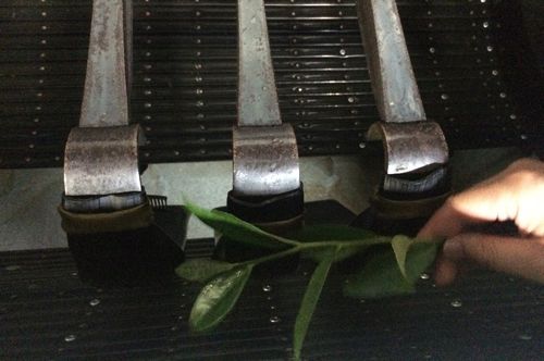 茎と葉は水分量も固さも違うので、同じ蒸し上がりになるように仕上げるのがとても難しいのだそうです。筒の回転スピードや諸々のタイミングを調整するのですが、それを見分けるのは「感覚」だそうで職人さんの技はすごいです。