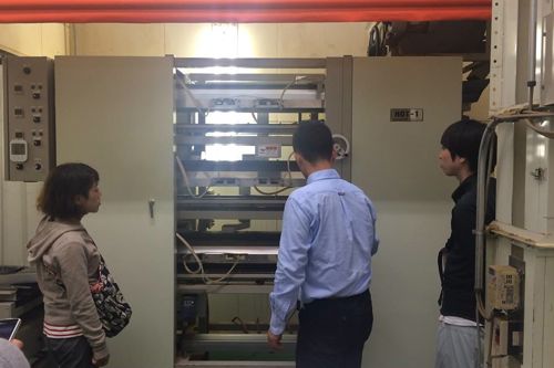 早速、茶畑を抜けて工場へ。「機械の仕組みがわかりやすいから」と、まずは規模が小さい工場へと連れて行ってくれました。