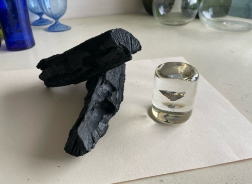 元旦に発生した能登半島震災では支援のため現地に足を運び、能登のものづくり現場での被害の大きさを実感されました。本展では能登半島震災で大きな被害に遭われた珠洲市の大野製炭工場の炭をガラスの中に閉じ込めたペーパーウェイトもご紹介します。木下宝さんのガラスの輝きが能登半島震災の希望の光となることを願って。