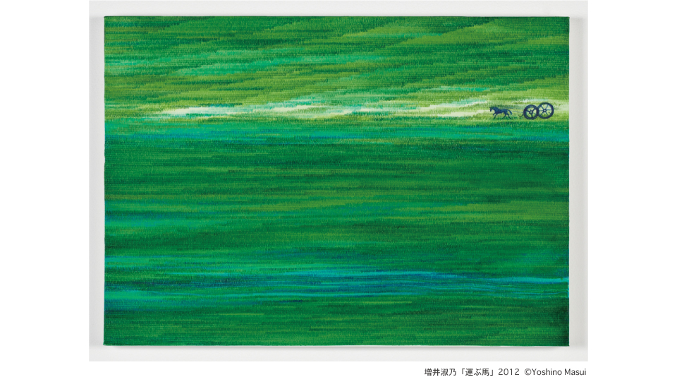土地との結びつきが断たれた経験により、しばしば浮遊感におそわれるという増井は、描くことでもう一度土地と繋がろうとしているのではと語ります。「誰にでもわかるものを描きたい」という彼女の美しく鮮やかな作品は、ダイレクトに観る者の心をとらえ、どこかで見、感じたことがあるような記憶の中の風景や感覚を思い起こさせるでしょう。本展では新作4点を含めた2010年以降の作品を展示致します。この機会に是非ご高覧下さい。