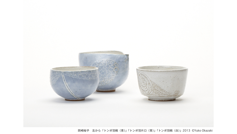 岡崎裕子は1976年東京生まれ。株式会社イッセイミヤケにて広報として勤務した後、陶芸家森田榮一氏に弟子入り。5年の修業を経て2007年横須賀市に自宅兼陶房を構え独立し、現在海と山に囲まれた美しい景色の中で制作活動をしています。小山登美夫ギャラリーでの2度目の個展となる今回は、修業時代に目にした美しい羽黒トンボからインスピレーションを得て制作された岡崎の代表的作品群、トンボの器に原点回帰した新作を発表致します。「羽に縦横無尽に広がる模様は、飛躍を思わせる広がりをもちつつ、網ように張り巡らされた罠のようにも見えます。網を描いている時間は、私の中で無心で無限に広がる時でもあります。」(作家による紹介)。のびやかに広がる羽を模した器には、作家なりの解釈で初めて挑戦した楽碗も発表されます。秋の季節にぴったりのモチーフの意欲作を、この機会にぜひご高覧下さい。