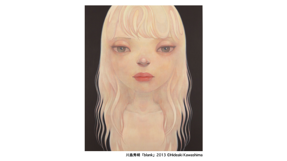 2003年に小山登美夫ギャラリーでの初個展を行なって以来、川島秀明は抽象化された人物像を描いてきました。無地の背景に顔だけが空中にふわりと浮かぶようにあり、妖気をあらわすかのような長くたなびく髪は、人間というより、その魂のようなものを想像させます。作家はここに自分を投影してきました。