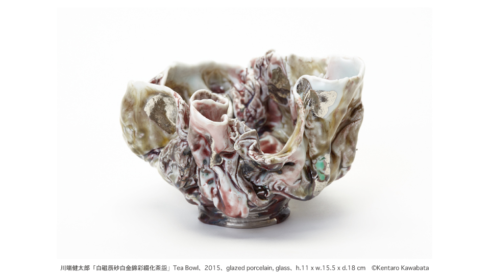 川端健太郎は1976年埼玉県生まれ。2000年に多治見市陶磁器意匠研究所を卒業すると、益子陶芸展加守田章二賞(04年)やパラミタ陶芸展大賞(07年)など、早くから陶芸の各賞を受賞しました。陶芸の老舗で数々の個展を行う一方で、唯一無二の感性と造形力は現代陶芸としての評価が高く、国立近代美術館工芸館(「現代工芸への視点―装飾の力」09年)や茨城県陶芸美術館(「現代陶芸現象展」14年)、岐阜県現代陶芸美術館(04年、10年)などの展覧会に参加しています。