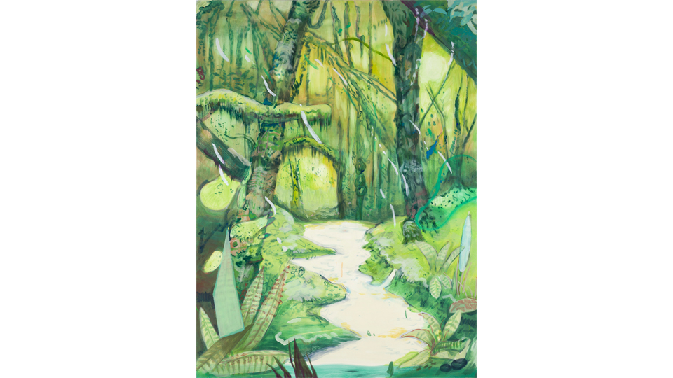 This exhibition features the artist's new jungle series that draw inspiration from the primeval forests she observed while camping over the past two years in Malaysia, Amami Oshima, and New Zealand. Such landscapes bring together her own memories and imagination, things she had recently observed, and scenes that reside within herself, ultimately coming to manifest through a repeated process of painting and erasing.
