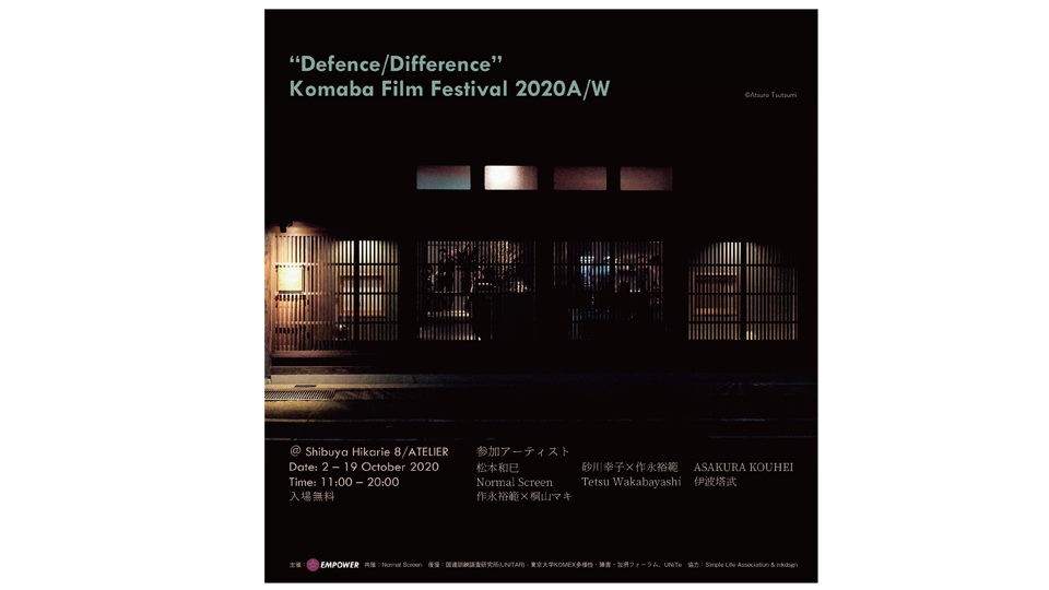 渋谷ヒカリエ 8Fの8/ATELIERで10月2日から19日の間で行われる“Defence/Difference” Komaba Film Festival 2020A/Wにて、特別試写が行われることになりました。