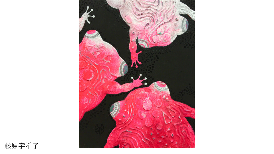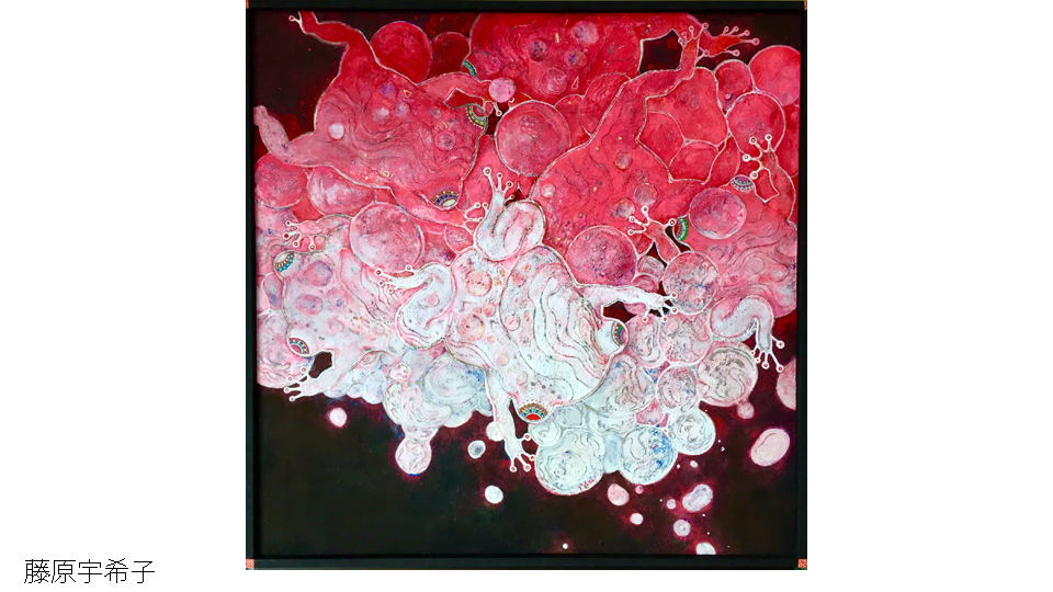 出展作家は、日本画 : 藤原宇希子 ・ 内山徹 そしてピクセルモンタージュ技法の市川健治の3名による共演。