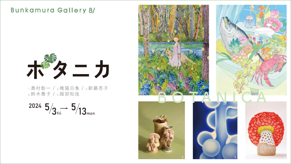 けれど、観葉植物には必ずお世話がつきもの。面倒見切れず枯らしてしまった経験もあるものです。そんな方に贈る今展では、「ボタニカ」をテーマに、それに纏わるものからインスピレーションを得る5名の作家をご紹介いたします。