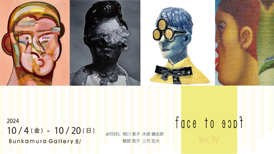 Faceに着目した4度目を迎える本展では、4つの異なる「顔」をご紹介します。人間の複雑な心境を露わにし、流動的な変容をみせる相川恵子の「顔」。慣れ親しんだフィギュアと現代の社会情勢を交え、虚構と現実を行き来する木原健志郎の「顔」。また、額賀苑子の立体作品では、相対する人間の価値観を併存させた表情が不可思議な歪みとなって表現されています。そして、三代宏大がつくる「顔」と目線が交わると、一見風変わりな世界観に引き込まれ、描かれた人物の奥に潜む思惑を感じ取ることができます。