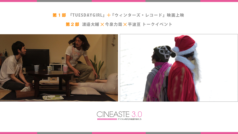 会場での上映作品は、『TUESDAYGIRL』(今泉力哉監督)『ウィンターズ・レコード』(平波亘監督)の2本となります。