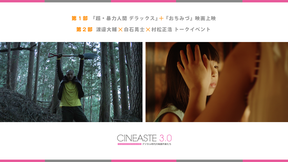 『CINEASTE 3.0』第6回のゲストは、『ノロイ』『オカルト』『シロメ』などフェイクドキュメンタリーの手法で数々の問題作を世に送り出して来た白石晃士監督と、『シンク』『けものがにげる』『兄兄兄妹』など瑞々しい作風で日本映画シーンに異彩を放ち続け、昨年行われた「ちば映画祭」での監督特集も話題となった村松正浩監督です。