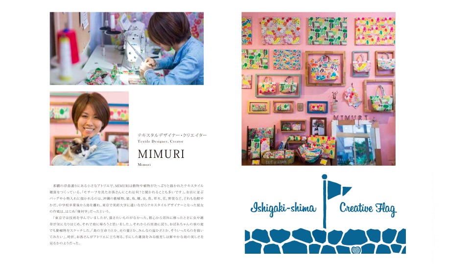 石垣島Creative Flag 展 オープニングパーティ 会 期 2014年5月28日(水) 時 間 19:00 - 21:00 開場時間 18:30 場 所 COURT 料 金 無料 定 員 100名 事前申込 要1~4の必要情報を参加人数分そえて以下のメールアドレス宛に送信ください。【1:お名前 2:所属 3:年齢 4:参加動機】石垣島Creative Flag運営事務局〈info@creativeflag.com〉 主 催 石垣市企画政策課、石垣島Creative Flag運営事務局 美しい自然に恵まれた石垣島ゆかりのクリエイター35組が参加する「石垣島Creative Flag」プロジェクトによる作品展示を5月28日より1週間、aiiimaにて開催いたします。展示初日には「8/」にてオープニングパーティを開催。石垣島より来場の石垣市長、pokke104(イラストレーター)、トム・ヴィンセント(PingMag編集長)、鯨本あつこ (離島経済新聞社主宰)によるトークをメインに、石垣島の旬の味覚や、島についての情報交換が楽しめます。 詳しくは公式サイトへ >> www.creativeflag.com