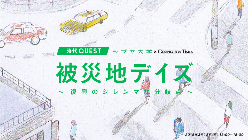 「正解のない問いを考える」をコンセプトに始まった、シブヤ大学×GENERATION TIMESコラボ企画による連続シリーズ講座『時代QUEST』。今回は、災害編として「復興における正解のない問い」をテーマに、2部構成で授業を行います。