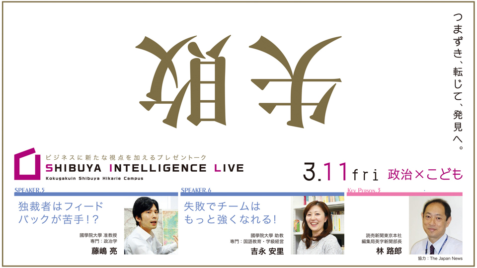 「学びはクリエイティブだ!」をコンセプトに、國學院大學がビジネスパーソンへ向けたトークイベント【シブヤインテリジェンスライブ】を開催します。
