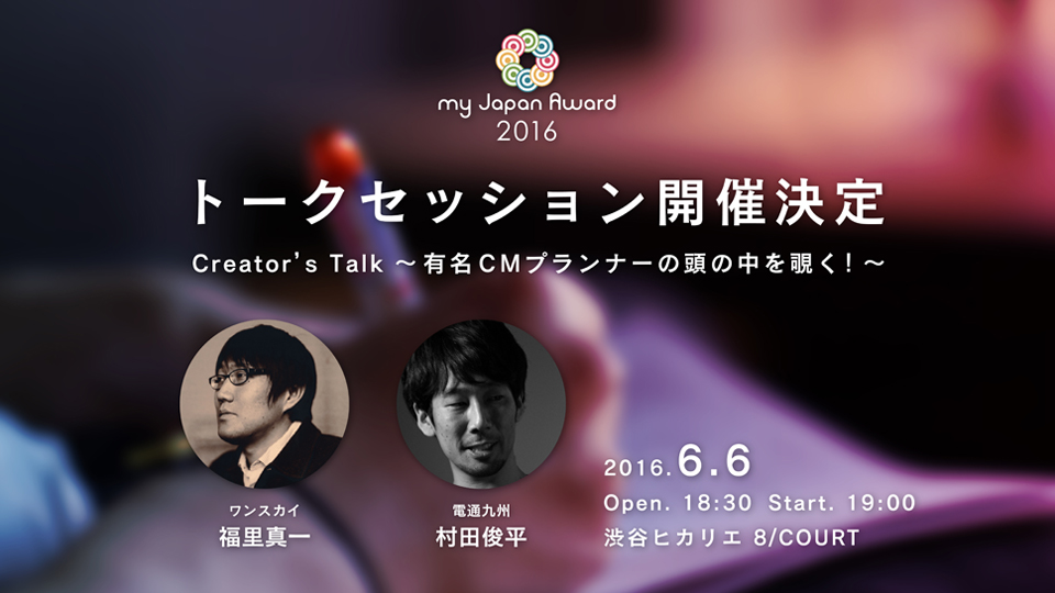 my Japan Awardは若手映像クリエイターを応援しており、