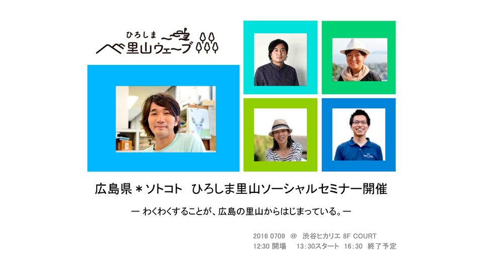 首都圏ソーシャル層とともに広島の里山を動かしている「ひろしま里山ウェーブ」が「広島県*ソトコト ひろしま里山ソーシャルセミナー」を開催します!