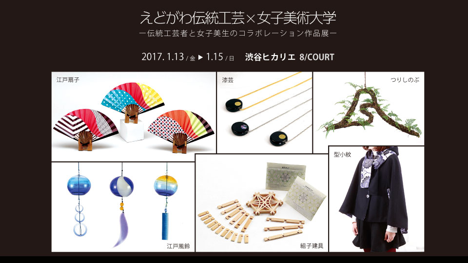 2003 年からスタートした「えどがわ伝統工芸産学公プロジェクト」は、「美大生の感性」と「伝統工芸者の技」により、現代に適応した新しい伝統工芸品を生み出すことで、伝統工芸産業の活性化を目指すものです。当プロジェクトの開発商品は、インターネットショップ「えどコレ!(楽天市場)」を始め、大手百貨店や海外店舗でも取り扱われるなど、着実な拡がりを見せています。この企画では、ここ数年間の優れたコラボレーション作品を展示・販売し、プロジェクトの紹介と伝統工芸のPR を行います。