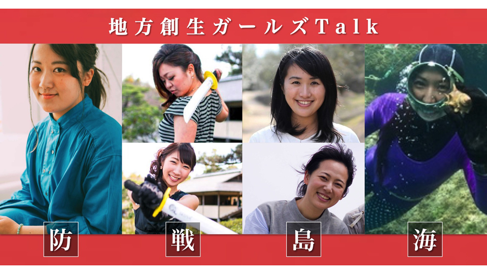 トークセッションでは、チャンバラ合戦 -戦 IKUSA- のガールズチームから森綾子さん&若林聖子さん、瀬戸内海の小豆島で起業して地域づくりを推進するDaRETOの城石果純さん&今田美玲さん、長崎県の壱岐島に移住して海女として活躍する大川香菜さんにお話いただきます。