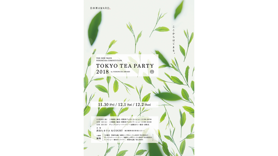 日本茶AWARD2018「TOKYO TEA PARTY」を11月30日〜12月2日に開催。三次審査では投票により日本茶大賞を決定!受賞茶の販売や、日本茶を知る様々な体験をご用意。