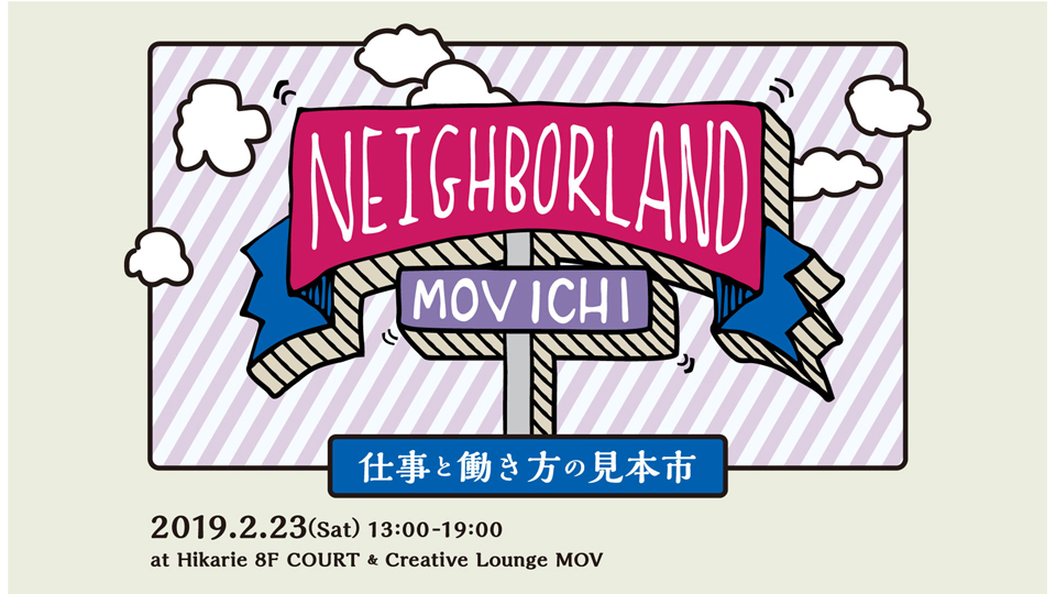 メンバー制ワークラウンジCreative Lounge MOVが主催する、仕事と働き方の見本市。職種も年齢も国籍も様々なMOVメンバー(=Neighbor)たちは、好きなことや得意なことで、仕事をうみだす達人です。そんな達人たちのユニークなスキルやナレッジを、みなさんに楽しみながら体験していただく場(=land)。それが「MOV市 – Neighborland –」(https://mov-ichi.com/)です。