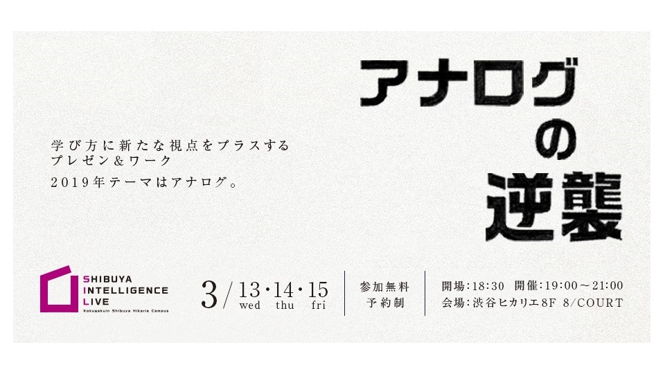 今年のシブヤインテリジェンスライブは、アナログにどっぷり浸かってアナログに学ぶ3日間。