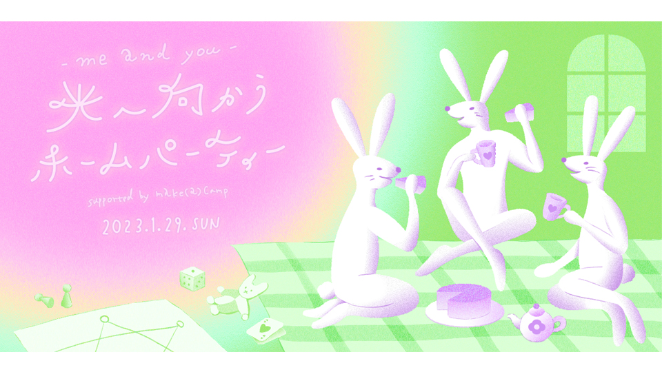 『me and you "光へ向かうホームパーティ” supported by make(a)Camp』では、吉澤嘉代子さん、小谷実由さん、haru.さん、永井玲衣さん、Nozomi Nobodyさんらが参加する3つのトークイベントのほか、J-WAVE(81.3FM)で放送しているラジオ番組『わたしたちのスリープオーバー』と連動した本の交換会のイベント、山崎まどかさん、戸田真琴さん、福富優樹さん(Homecomings)など10名が参加する本の中身がわからない古本市、つめをぬるひとさんによるつめぬり、opnnerのKaho Iwayaさんがアートワークを手がけた『わたしとあなた 小さな光のための対話集』スペシャルエディションの販売など、心が柔らかくおどるコンテンツを揃えてお待ちしています。