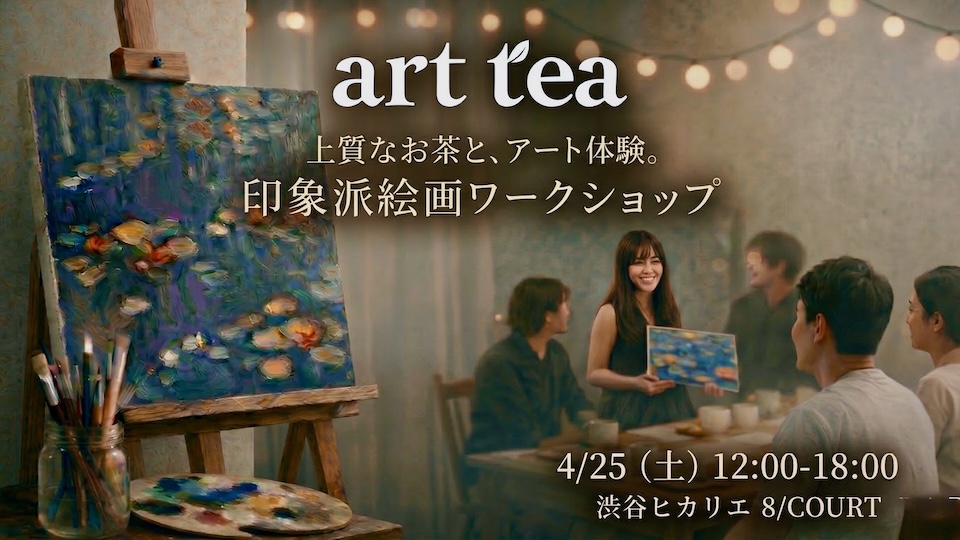 arttea 印象派絵画ワークショップ上質なお茶と,アート体験。 会 期 2026年4月25日(土) 時 間 12:00 - 18:00 場 所 8/COURT 料 金 6,000円 定 員 各回20名/全3回予定 事前申込 要HPよりお申し込みください。https://arttea.tokyo/hikarie/ 主 催 Accessibility Japan合同会社/arttea(アートティー)info@accessibility-japan.com 上質なお茶を楽しみながら気軽に描ける、はじめての印象派アートワークショップ お茶の香りに心をほどきながら、印象派の光と色彩にふれるひととき。 arttea(アートティー)による印象派絵画ワークショップを開催します。描くことの上手さよりも、まずは感じること、色を重ねること、心のままに手を動かしてみることを大切にした体験です。アートが初めての方でも、講師のサポートのもと、安心してご参加いただけます。 慌ただしい日々の流れから少しだけ離れ、自分の感性と静かに向き合う時間をお楽しみください。ひとりでじっくり楽しみたい方にも、大切な人と一緒に新しい体験を味わいたい方にも開かれた絵画ワークショップです。 WEB:https://www.instagram.com/arttea.tokyo/ 吉原順一郎 茶道歴11年、三田福茶会。銀座一穂堂「第8回翔ぶ鳥展」~世界に翔く若手のトップアーティスト~選出。お茶とアートを掛け合わせた体験を提案。 WEB:https://accessibility-japan.com/philosophy/