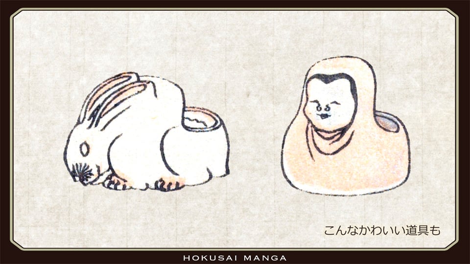 「食いねぇ!」「らっしゃい!」江戸のにぎわいが今にもきこえてきそうな『北斎漫画』。葛飾北斎が自ら取得したあらゆる画技、画法を駆使して森羅万象を網羅的に描いた全15編の絵手本です。初編の前文に気の向くまま『漫』然と描いた『画』と書かれている通り、江戸の風俗、職人を始めとして動物・植物・風景・故事から妖怪に至るまで、実に4,000近い図が描かれています。