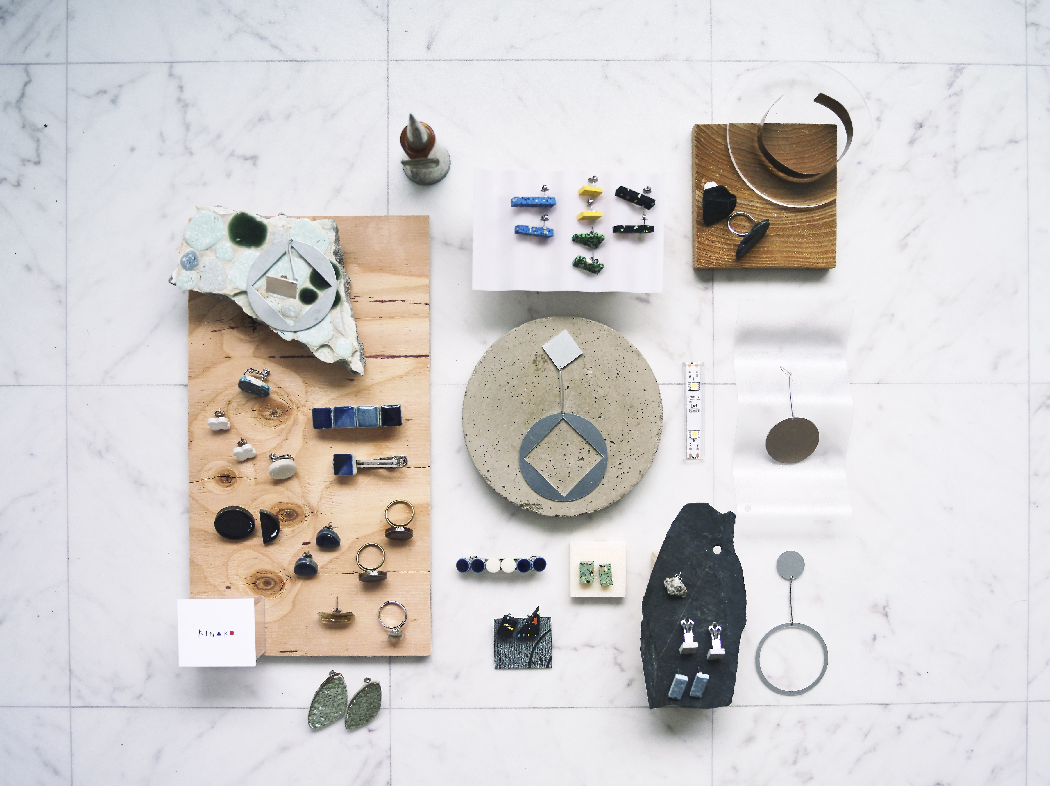 建材アクセサリー。建築の端材や廃材を身につけることで、建築を直に身近に感じていただければと考えております。建築のカケラを身に着けて、ちょっと建築の世界を楽しんでみませんか。