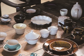因州中井窯や山根窯といった鳥取を代表する陶器、因州和紙のランプシェード、弓浜絣を使った小物、若手工芸作家