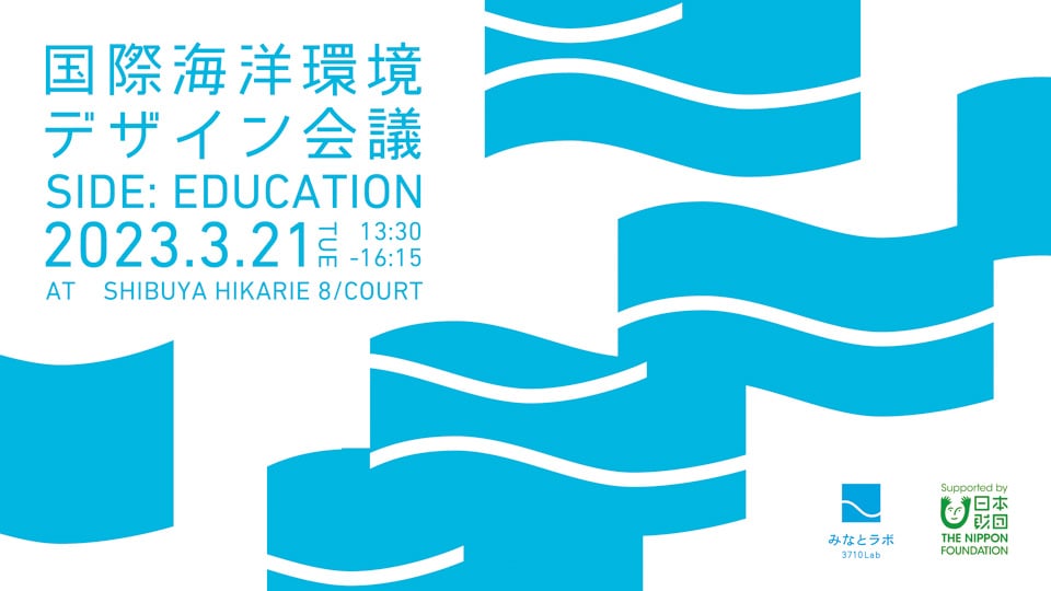 「海と人とを学びでつなぐ」をテーマに、海洋教育とデザインを融合し実践的なプログラムを提供している3710Lab(みなとラボ)は、日本財団の助成のもと2023年3月21日(火・祝)、渋谷ヒカリエ 8/COURTにて『国際海洋環境デザイン会議 Side:Education』を開催します。