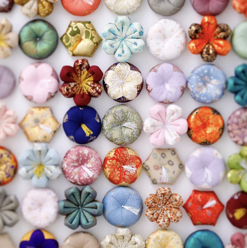 展覧会で富山県代表としてご紹介している仏具メーカー・サカエ金襴は、仏具の産地・高岡市でお袈裟やリン布団、寺社仏閣で使われる柱巻など、金襴(きんらん)と呼ばれる華やかな紋織物を使った仏具の製造を手掛けています。近年では、仏教、特に禅の教えをわかりやすく伝える提案として、瞑想用クッションなどを提案するブランド「ZAF」を立ち上げるなど、"モノ”を通じて心と身体の調え方を伝える活動をしています。