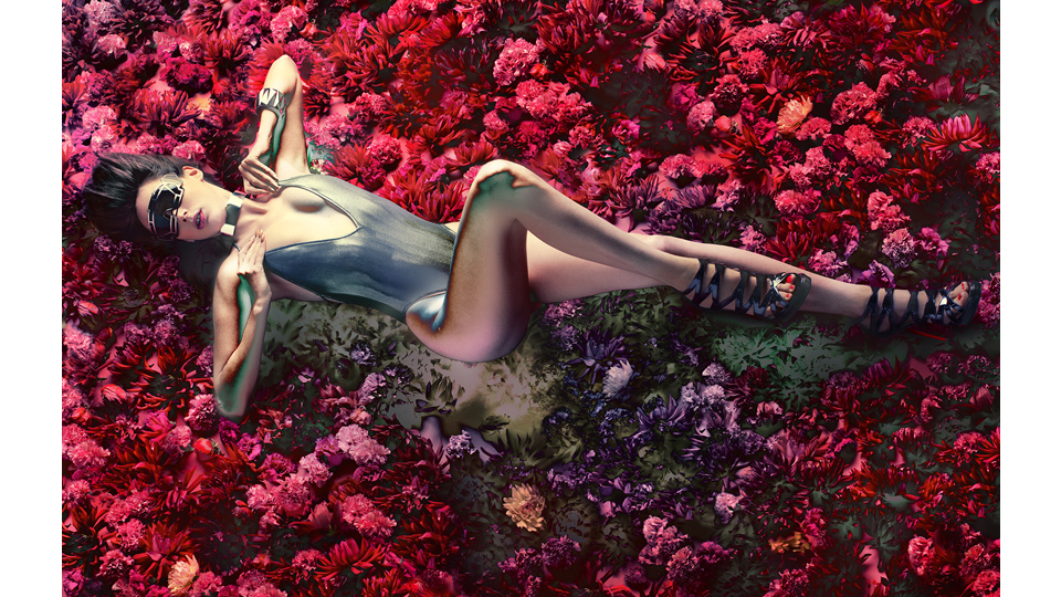 2006年よりファッションや広告などさまざまな撮影を共にしてきた資生堂のトップクリエーターである計良氏と華道家であり写真家の勅使河原氏が、花を題材に作品を共作しました。メインビジュアルにはパリコレなど国内外で活躍するモデルの松岡モナさんを起用。ある程度の方向性を事前に相談し、現場にてほぼ即興で創作される、ふたりのクリエーティビティ溢れる斬新な創作作品など30点を公開します。