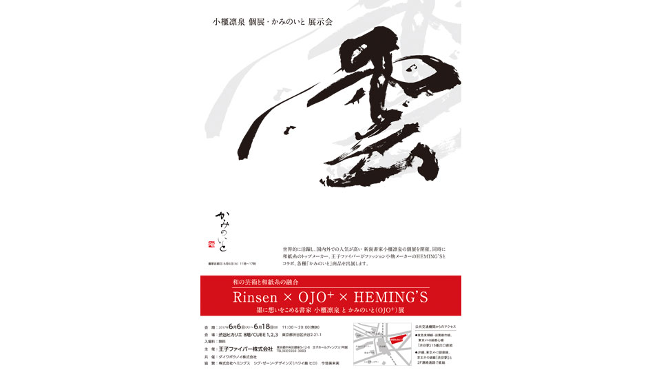 新鋭書家 小櫃凛泉の個展と和紙糸のトップメーカー王子ファイバーがコラボし、2回目の展示会を開催します。
