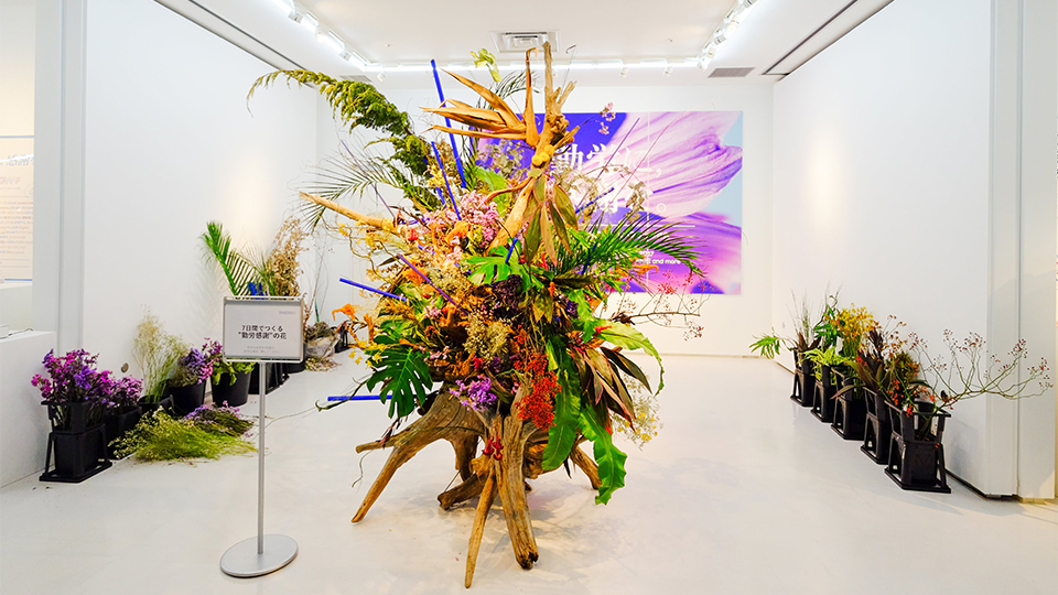来場いただいた皆さんに自由に花を活けていただく参加型インスタレーションを設置。”勤労への感謝”を1つの活け花としてつくりあげます。