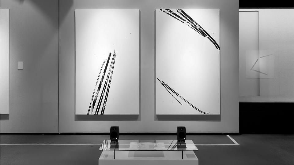 書の美意識を背景に、暗号、モールス符号、点字などの言語記号やそのシステムを題材にした「言語の新たなカタチ」を提示している。