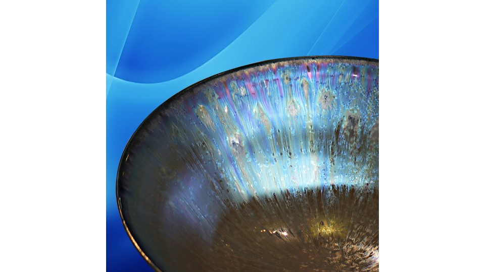 光にかざすと絵柄が透き通る極薄の器や、虹色の光彩を放つ窯変の器。