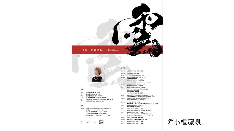 世界的に活躍し、国内外での人気が高い 新鋭書家小櫃凛泉の個展。