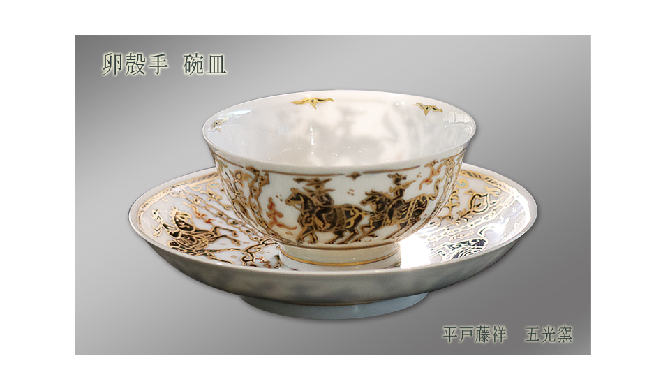 陶磁器の技法の中でも、超絶技巧を駆使した極薄手磁器「卵殻手」。そして三川内焼伝統の精錬された磁土に虹彩を放つ釉薬を焼き上げた新窯変。研ぎ澄まされた器の世界は、数百年の磁器の歴史を超えて、今もなお独特のきらめく光を輝かせます。