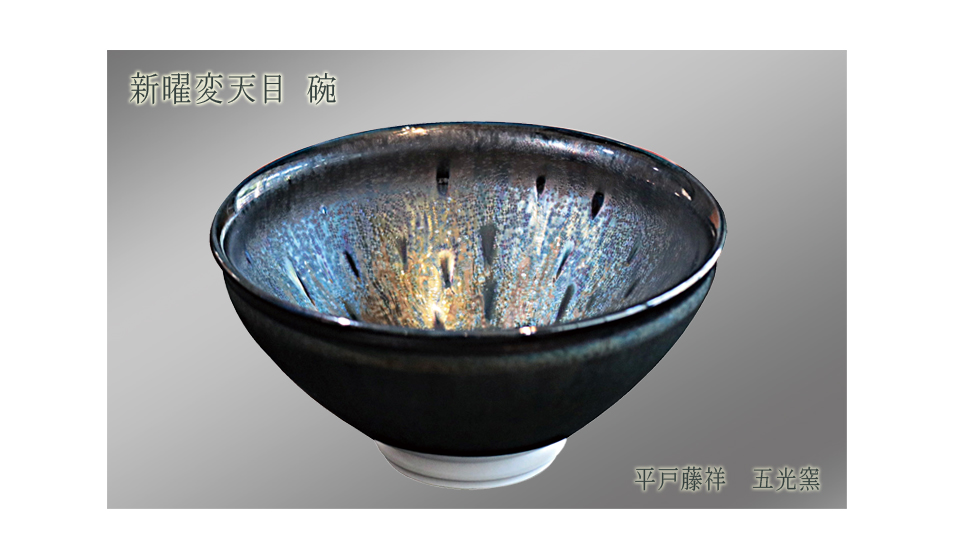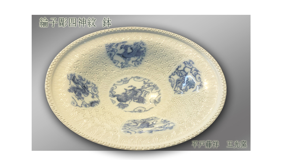 光にかざすと絵柄が透き通る極薄の器や、虹色の光彩を放つ新窯変の器。平戸藤祥五光窯「光彩の器展」では、400年の伝統を誇る三川内焼の陶技を引き継ぎ、さらに精錬された磁土に超絶技巧の窯変を焼き上げ、陶技を尽くした器を展示します。